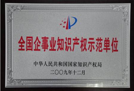 2009年12月,公司獲“全國企事業(yè)知識(shí)產(chǎn)權(quán)示范單位”證書