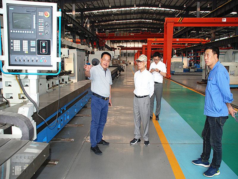 朱森第輕車簡從,來到星火機(jī)床公司后直接深入生產(chǎn)現(xiàn)場參觀調(diào)研。在蔣保權(quán)的陪同下,朱森第先后在公司工業(yè)園各分廠和本部主要分廠參觀調(diào)研。參觀調(diào)研中,蔣保權(quán)詳細(xì)介紹了公司發(fā)展歷程和變化、工業(yè)園建設(shè)情況、國內(nèi)外子公司生產(chǎn)經(jīng)營和企業(yè)目前現(xiàn)狀,以及今后發(fā)展設(shè)想等工作。朱森第重點(diǎn)了解了公司生產(chǎn)的各種重型、大型、精密機(jī)床和專用機(jī)床的性能、技術(shù)水平、銷售市場,以及產(chǎn)品研發(fā)生產(chǎn)能力和智能制造方面取得的效果。