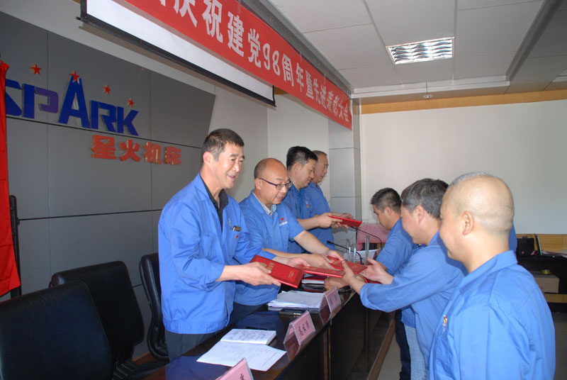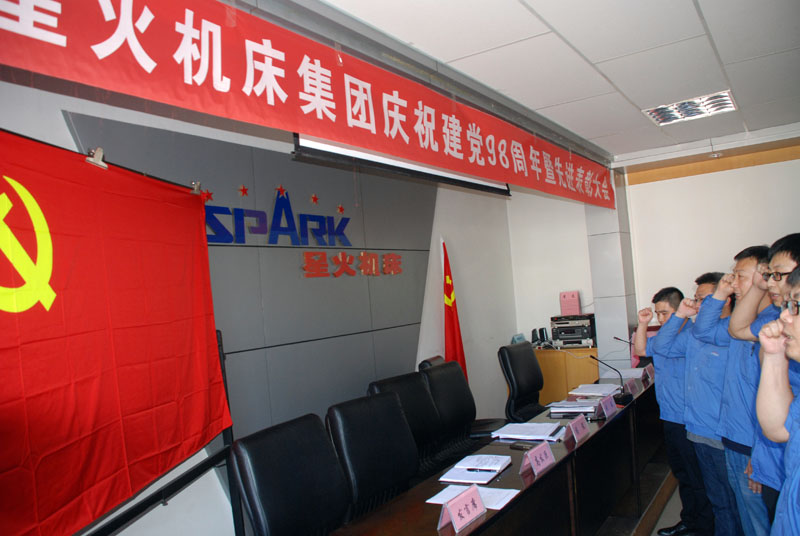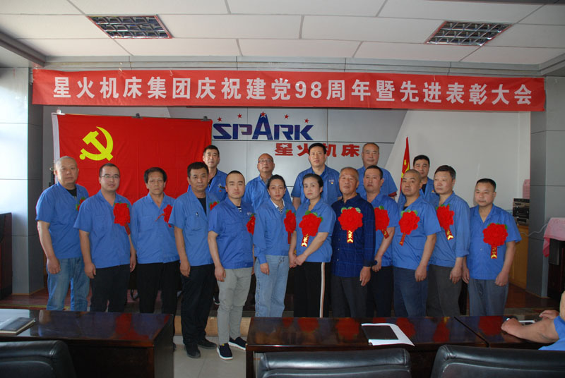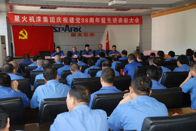 7月1日,在中國共產黨建黨98周年之際,星火機床公司在大會議室隆重召開慶祝建黨98周年暨2018—2019年度先進表彰大會,紀念黨的生日,重溫入黨誓詞,為獲得示范黨支部及先進黨支部的集體授牌,向李清錄等16名被評為優秀共產黨員稱號的黨員頒獎。黨委專職副書記、紀委書記、星火機床集團公司副總經理、工會主席蔣俊發表講話,對下一步黨建工作提出要求。