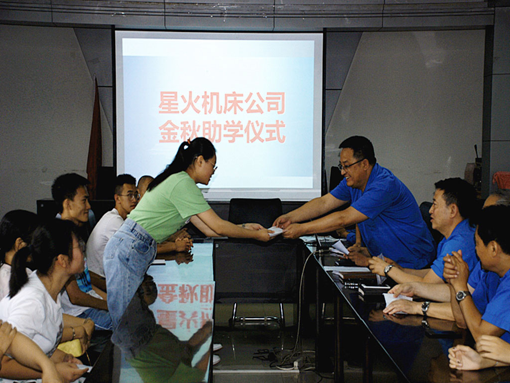 之后,星火機床集團公司領導蔣保權、劉勝、趙錦銘現場為18位中榜學子發放了助學金。