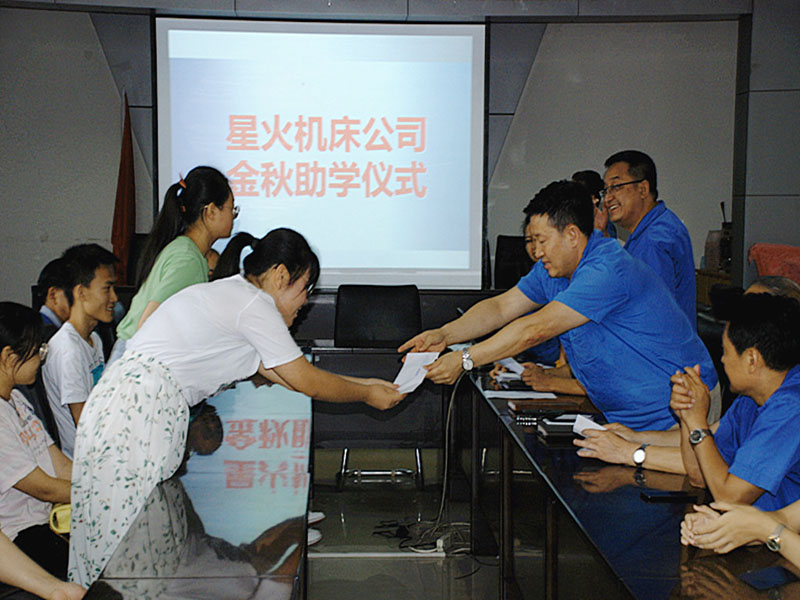 8月13日,星火機床公司舉行“金秋助學”活動,為他們送上公司的祝賀和鼓勵。星火機床集團公司領導蔣保權、劉勝、趙錦銘參加“金秋助學”儀式并為他們發放了助學金。高考上榜學子家長見證了這一難忘的時刻。