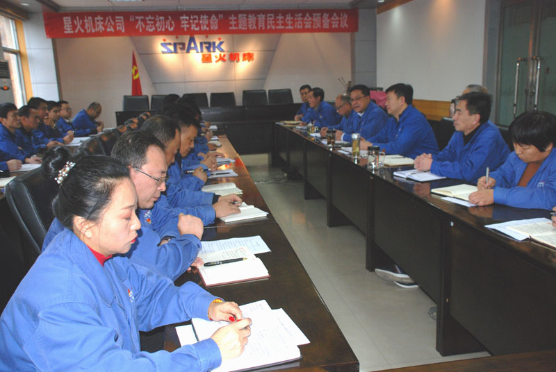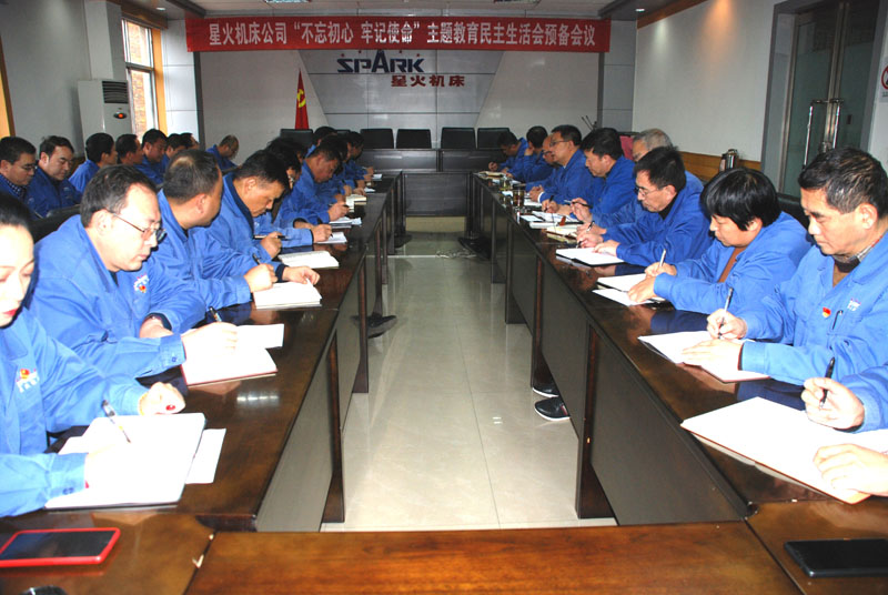 11月16日,星火機床公司利用周六休息時間在大會議室召開“不忘初心、牢記使命”主題教育民主生活會預備會。黨委書記、星火機床集團公司董事長蔣保權認真檢視個人在工作方面的不足,對分管的部門及其主要負責人,對每一位中層干部工作進行點評,提出中肯的意見及建議;星火機床集團及星火機床公司領導蔣保權、劉勝、蔣俊、趙錦銘、鞠家兵、劉生玉、劉強、展海瑜、胡慶峰、楊克祥分別對各自分管的部門及主要負責人的工作進行點評,提出建議和意見;各部門一把手分別總結了個人工作中存在的不足,對班子及班子成員提出了建議和意見。會議由黨委副書記、星火機床集團公司副總經理蔣俊主持。