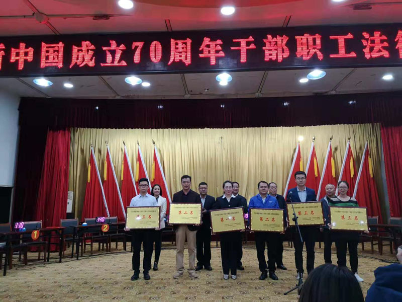 9月20日,由天水市總工會、天水市人力資源和社會保障局、天水市工業(yè)和信息化局、天水市司法局共同舉辦的全市慶祝新中國成立70周年勞動法律知識競賽活動在天水市迎賓館舉行,來自天水市各縣區(qū)、市直部門和駐市企業(yè)的共23支代表隊的120名選手參加了競賽。經過緊張激烈的角逐,星火機床公司代表隊脫穎而出,獲得了本次比賽的第二名。