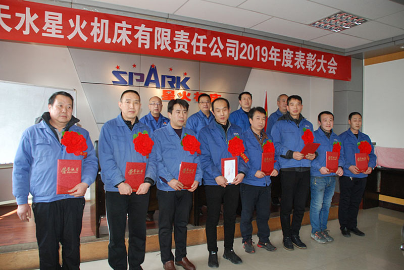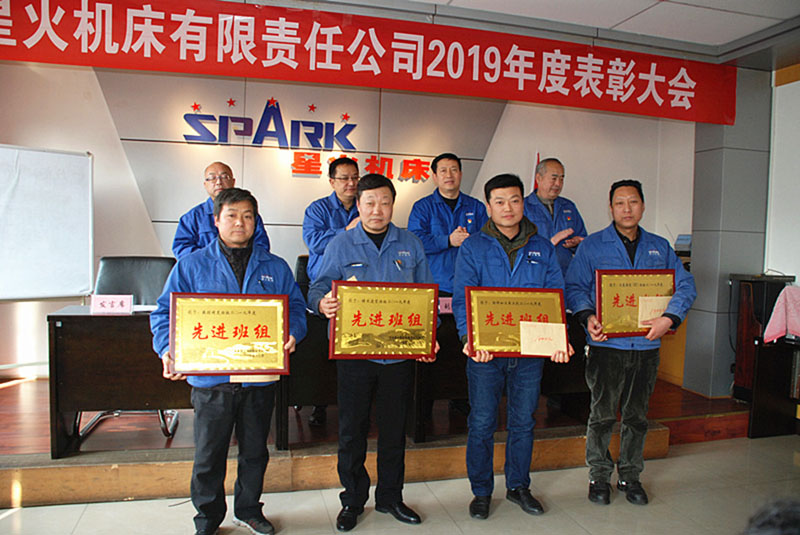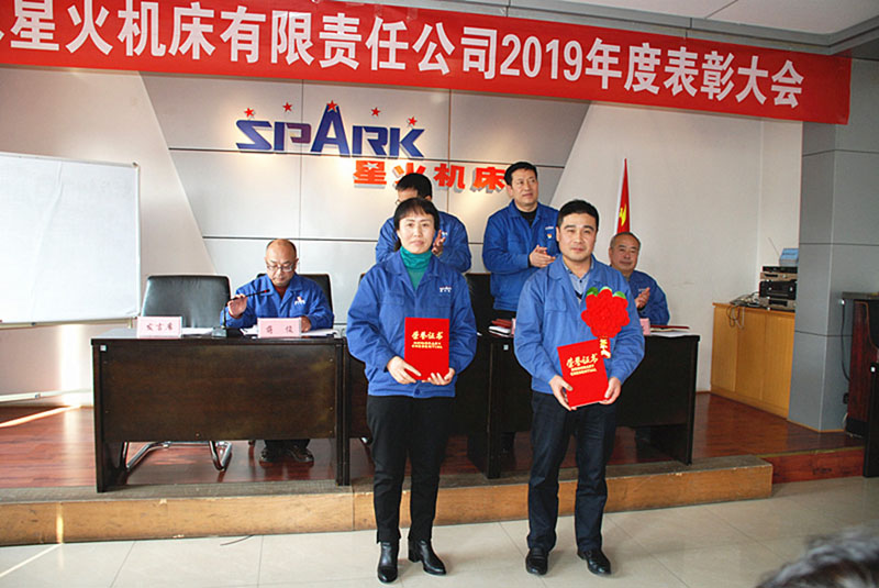 星火機床集團公司總經理劉勝宣讀了《關于表彰2019年度先進集體和先進個人的決定》;集團公司副總經理、星火公司總經理趙錦銘宣讀了《關于QC成果表彰獎勵的決定》。大件加工分廠、公司工會榮獲先進集體稱號;數控精度班組、鑄木造型班組、部件加工車工段、大裝精度(80)班組榮獲先進班組稱號。杜治軍、張志鴻、馬愛來等34位同志榮獲先進個人稱號,受到表彰獎勵。先進集體代表和先進個人胸佩紅花,依次登臺領獎。