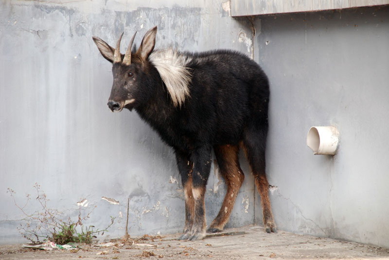 3月17日下午5點多,星火機床集團公司黨群工作部部長蔡建欣接到一名員工的電話,一頭似鹿似牛的“不速之客”闖進了星火工業園生產現場。接到電話,蔡建欣迅速來到現場。經查詢相關資料,這位“不速之客”名叫鬣羚,屬牛科。因它的角像鹿不是鹿、蹄像牛不是牛、頭像羊不是羊、尾像驢不是驢,人們據此將其與馴鹿、駝鹿和麋鹿一起稱為“四不像”。是中國國家二級重點保護動物。