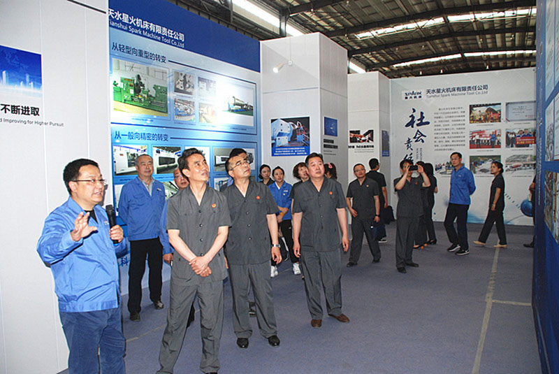 在星火機床集團公司領導陪同下,天水市中級人民法院領導、法官一行,先后深入工業園各生產現場和公司本部部分單位,參觀了生產現場、機床產品和公司展廳。