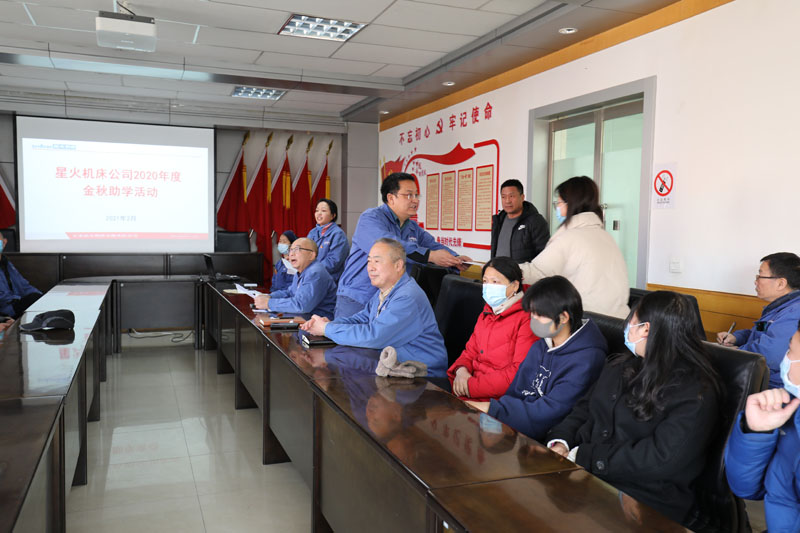 2月2日,星火機床公司會議室迎來了19名2020年秋季新入學的大學生及其家長,參加了星火機床公司因新冠肺炎疫情影響延遲舉辦的 “金秋助學”活動。