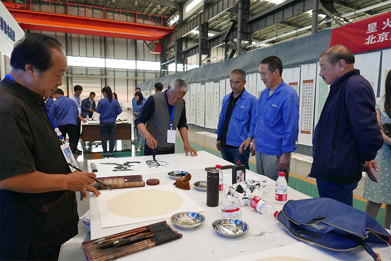 在中國(guó)共產(chǎn)黨建黨一百周年來(lái)臨之際,為推進(jìn)企業(yè)“學(xué)黨史、強(qiáng)黨性、促發(fā)展”活動(dòng)深入開展,帶動(dòng)廣大黨員和職工群眾勇躍參加建黨百年慶祝活動(dòng),以多種形式歌頌黨的豐功佳績(jī),表達(dá)對(duì)黨的崇敬和熱愛。5月12日,星火機(jī)床集團(tuán)公司隆重舉辦慶祝中國(guó)共產(chǎn)黨建黨100周年黨史學(xué)習(xí)教育“黨在我心中”職工書畫作品展,并邀請(qǐng)北京當(dāng)代翰墨文化藝術(shù)院甘肅分院有關(guān)領(lǐng)導(dǎo)和老師現(xiàn)場(chǎng)創(chuàng)作書畫,為公司各級(jí)勞模送字、送畫,活動(dòng)現(xiàn)場(chǎng)熱烈而有序。