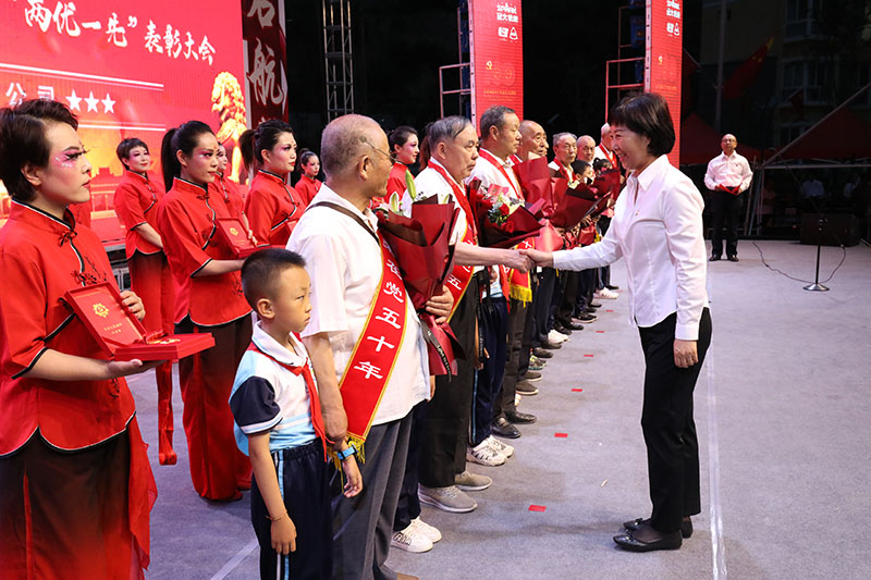 天水市人大副主任、市總工會主席王曉琴向“光榮在黨50年”老黨員代表頒發了紀念章。