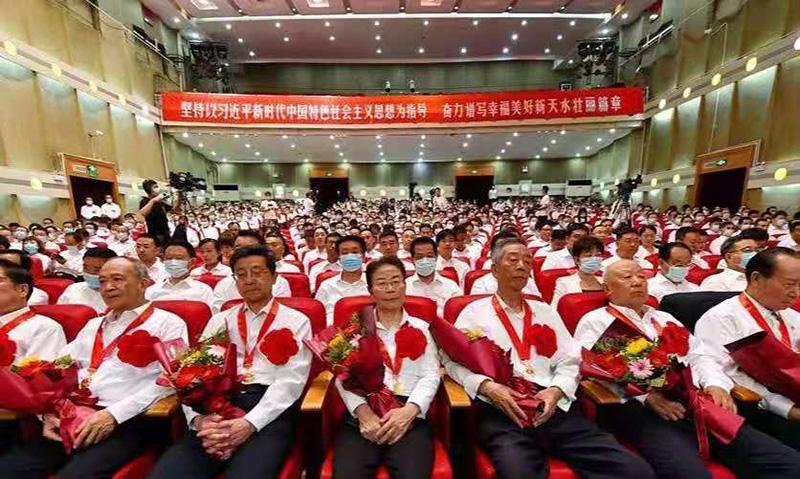 在中國共產黨成立100周年之際,6月28日,天水市“兩優一先”表彰大會在秦州劇院隆重召開。大會表彰了近年來全市各條戰線、各個領域涌現出的優秀共產黨員、優秀黨務工作者和先進基層黨組織,動員和激勵全市各級黨組織和廣大黨員干部不忘初心、牢記使命,銳意進取、砥礪前行,加快建設幸福美好新天水,奮力譜寫全面建設社會主義現代化國家新篇章。