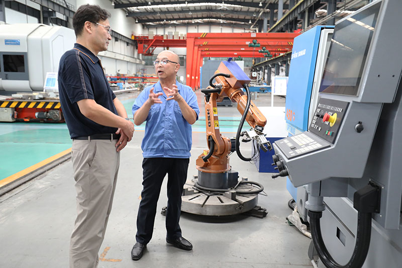 8月18日,天水師范學院黨委書記李正元,黨委常委、副校長汪聚應、王文東,校辦主任王建斌,人事處處長張利軍,教務處處長郭昭第,科研管理處處長左國防,研究生處處長吳原,合作交流處副處長石峰,機電與汽車工程學院院長羅海玉,化學工程與技術學院副院長李志鋒,電子信息與電氣工程學院黨委副書記王岱一行12人來星火機床公司參觀考察。星火機床集團公司黨委副書記、副總經理蔣俊,集團公司副總經理、星火公司總經理趙錦銘,星火公司副總經理劉生玉,總經理助理、機床研究院常務副院長展海瑜及行政綜合部部長姚保忠,黨群工作部部長蔡建欣接待并陪同參觀考察。