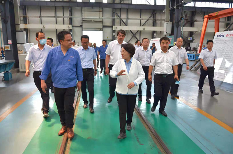 張永霞書記一行先后深入星火機床公司工業園裝配、加工生產現場和紅山公司生產現場,參觀了各種產品。調研中,星火機床集團公司黨委書記、董事長蔣保權向張永霞書記重點介紹了星火機床集團公司基本情況、生產經營工作、產品市場占有率、行業地位,公司正在實施或即將實施的多軸聯動數控纏繞機床研發及產業化項目、核乏燃料儲運罐生產線研發及產業化項目,機床研發設計檢測及創新能力提升、公司“十四五規劃”、公司鑄造智能化綠色化升級改造、戰略重組青海青重機床和智能制造及產業化、船用特型零件專用加工設備研發、大型五軸車銑復合加工中心研發等項目進展和預期效益,以及目前存在的困難和遇到的問題。