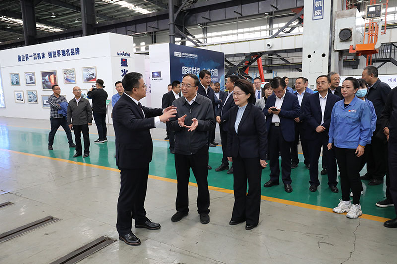 簽約儀式開始前,星火機床集團公司董事長蔣保權陪同省、市領導參觀了公司主要產品并介紹了產品性能。