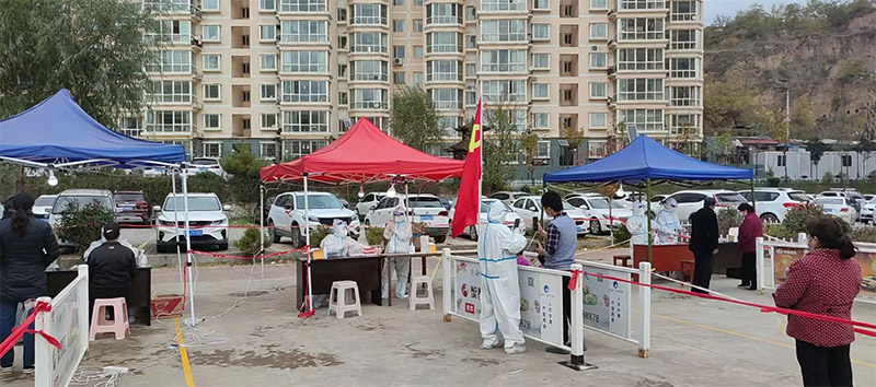 楊直立即與公司總經理助理胡慶峰溝通,調配車輛,聯系商家,連夜購置防疫消殺物資,及時將防疫物資發放到公司各單位,各部門;醫生桑博、李彤等配合社區人員,提前準備桌椅、照明設施等,配合援助開展核酸檢測的醫護人員;醫生岳國亮、劉全成則主動擔起環境消殺的重任,與病毒“正面交鋒”……