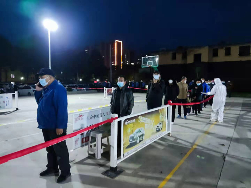 此時已是凌晨一點多,深秋的夜晚冷風嗖嗖,等待做核酸檢測的人們排起了長隊。她們不停地在現場穿梭,忙碌的身影,在夜晚的燈光映照下,略顯疲憊。她們——就是星火職工醫院的醫護人員。