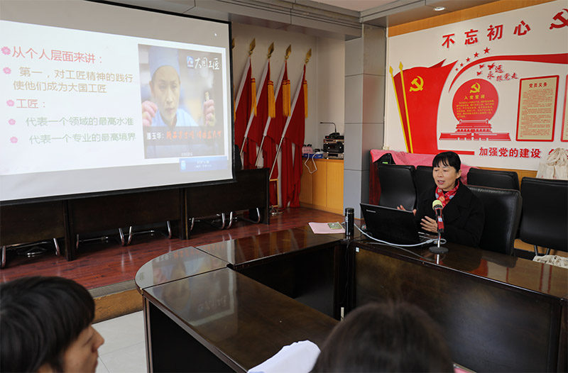 隨后,宣講組武兵主任對(duì)中國工匠文化傳統(tǒng)、大國工匠的內(nèi)涵、工匠精神的實(shí)質(zhì),以及工匠精神的基本特點(diǎn)、大國工匠在國家建設(shè)中的重要作用、黨和國家對(duì)工匠等高技能人才的重視,大國工匠、隴原典型人物的事跡作了系統(tǒng)講解,總結(jié)提煉了專注、創(chuàng)新、敬業(yè)、堅(jiān)守、嚴(yán)謹(jǐn)、精益求精、一絲不茍、追求卓越、力行正道等工匠精神的基本特點(diǎn)。希望廣大產(chǎn)業(yè)工人立足崗位,潛心鉆研,致力創(chuàng)新,向大國工匠學(xué)習(xí),向大國工匠看齊,做到大巧于心,大慧于行,為經(jīng)濟(jì)發(fā)展和國家建設(shè)做出自己的貢獻(xiàn)。
