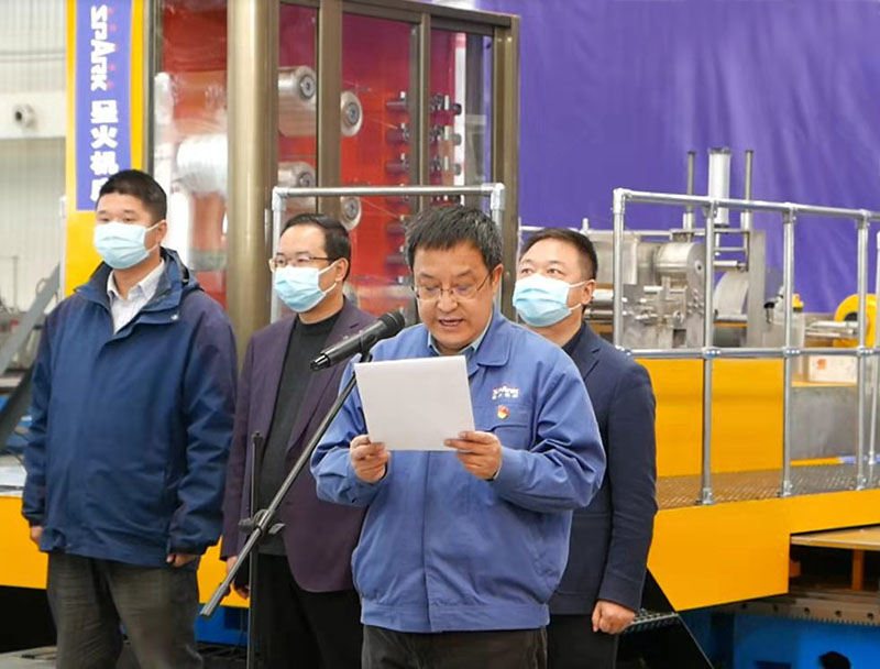 星火機床集團公司黨委書記、董事長蔣保權致辭并介紹項目研發情況,對各位領導、用戶代表在目前疫情防控關鍵時期蒞臨星火機床生產現場,參加公司國家重點項目數控纏繞設備交付儀式表示熱烈歡迎!