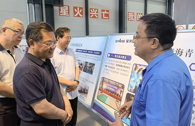 任振鶴省長聽取了星火機床公司黨委書記、董事長蔣保權關于企業上半年生產經營情況、技術創新體系建設、產品研發成果、在攻克“卡脖子”問題中發揮的作用、項目建設情況匯報,并實地查看數控機床裝配現場、重型機床裝配現場。