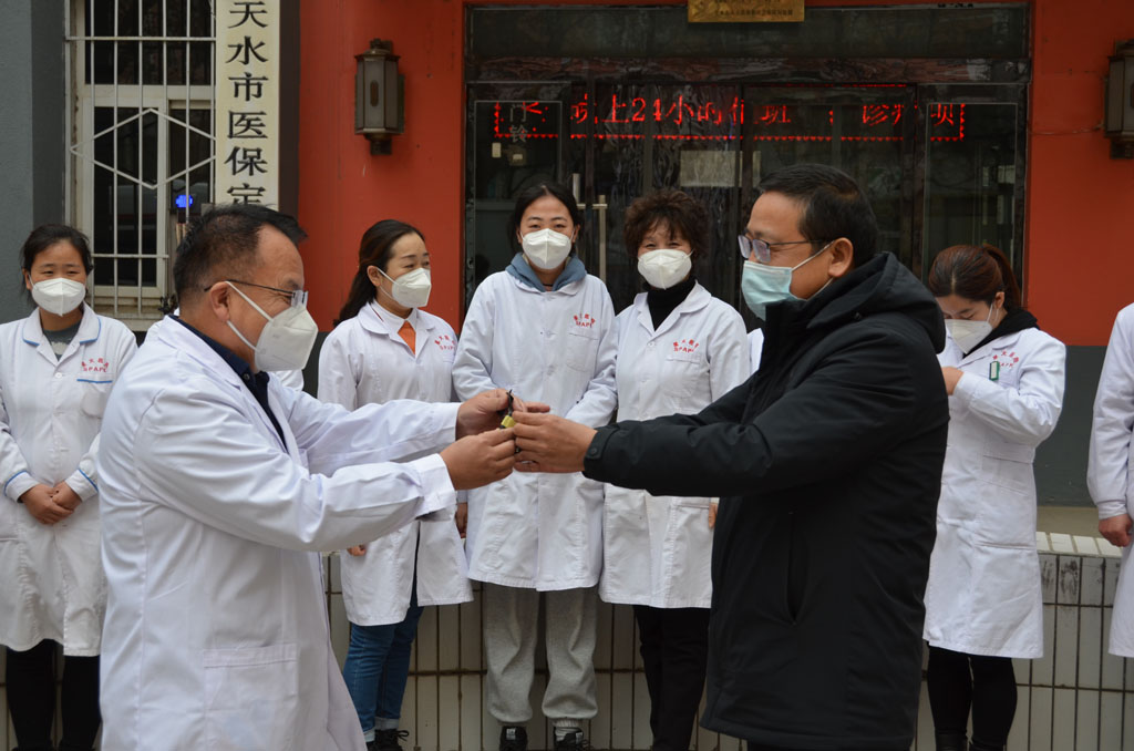 12月13日,星火職工醫院職工自籌資金購置的新型救護車在醫院大門前落地,在一陣清脆的鞭炮聲中,星火機床公司總經理助理、星火物業管理公司經理胡慶峰代表公司表示祝賀,并親手將車鑰匙交給星火職工醫院院長楊直。