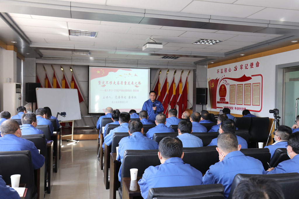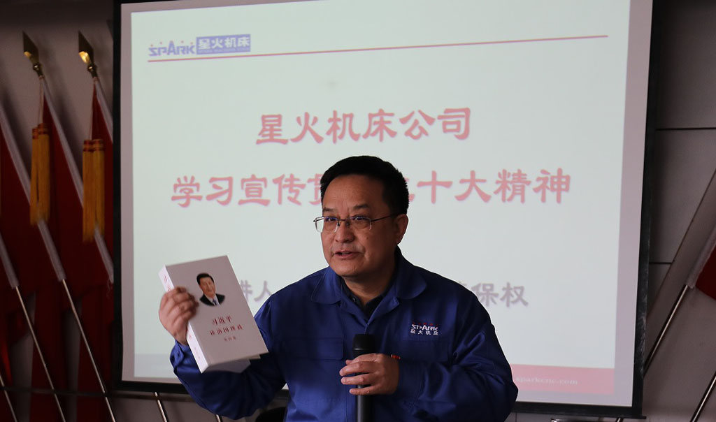 11月25日,星火機床公司黨委組織中層以上干部、黨支部書記、分會主席、青年骨干職工集體學習黨的二十大精神。集團公司黨委書記、董事長蔣保權結合習近平治國理政思想就堅持中國共產黨的領導、堅持人民至上、保持高昂的斗爭精神和堅定不移走高質量發展之路等方面內容講專題黨課。