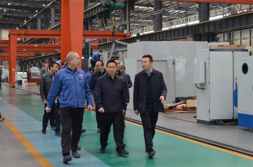 調(diào)研組一行在參觀機(jī)床裝備公司裝配現(xiàn)場時(shí),冉小平和趙錦銘親切交流。趙錦銘向調(diào)研組一行介紹了企業(yè)生產(chǎn)經(jīng)營、技術(shù)創(chuàng)新等情況。