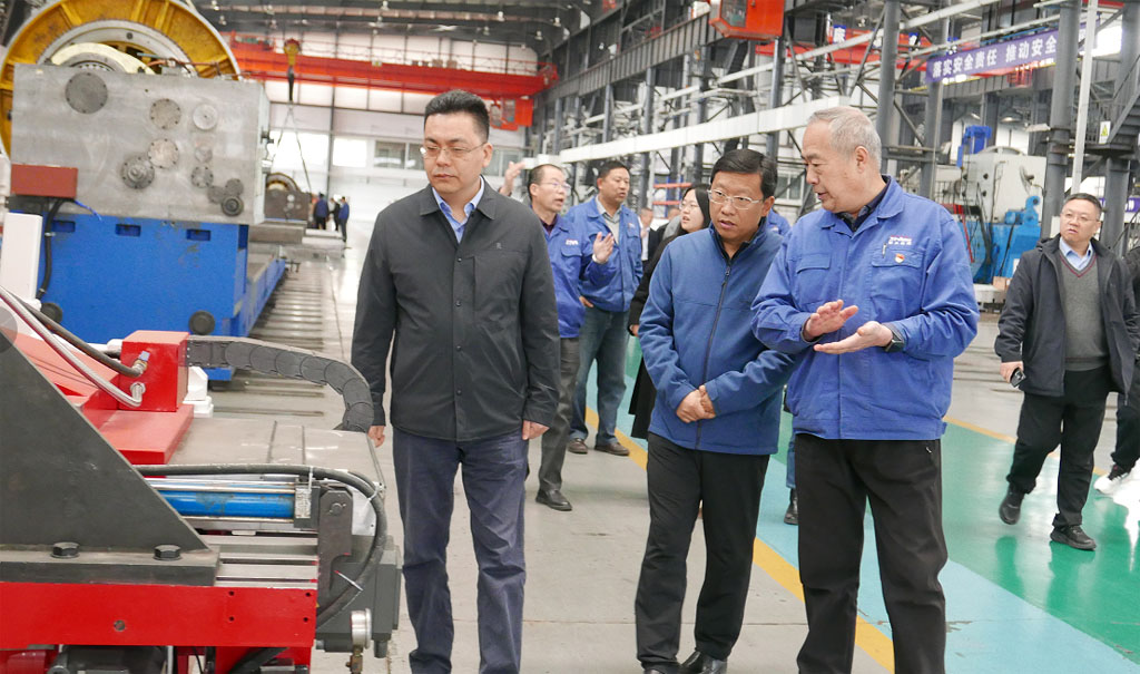 在星火機床公司裝配生產現場,集團公司副總經理、星火公司總經理趙錦銘向張朝洋一行詳細介紹了公司歷史沿革、生產經營、產品研發、項目建設等情況,并陪同參觀了公司自主研發的各類大、重型數控機床產品,以及即將亮相北京國際機床展會的三臺展機。