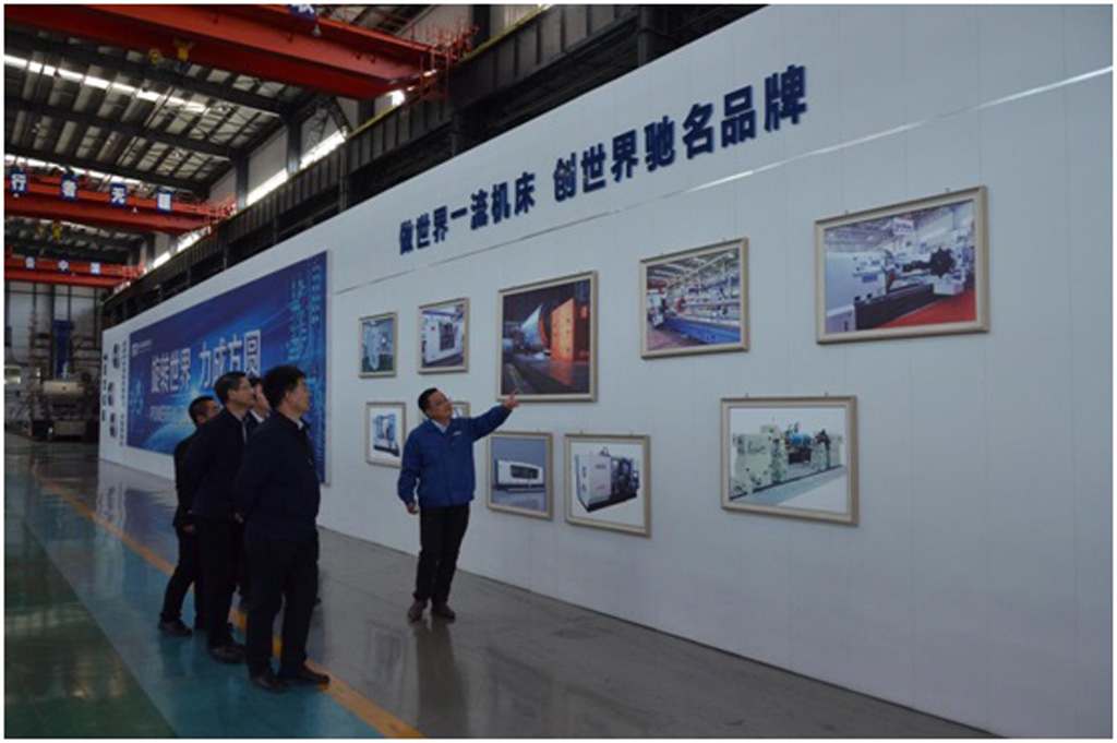 在裝配車間,即將參加2023第十八屆中國國際機床展覽會的五軸聯動車銑復合加工中心正在進行最后的系統調試。江系貴一行在五軸聯動機床旁,聽取了蔣保權介紹之后,對公司突破國外技術封鎖,實現核心技術自主可控的實際效果表示贊嘆。