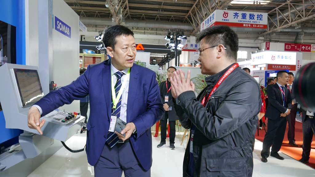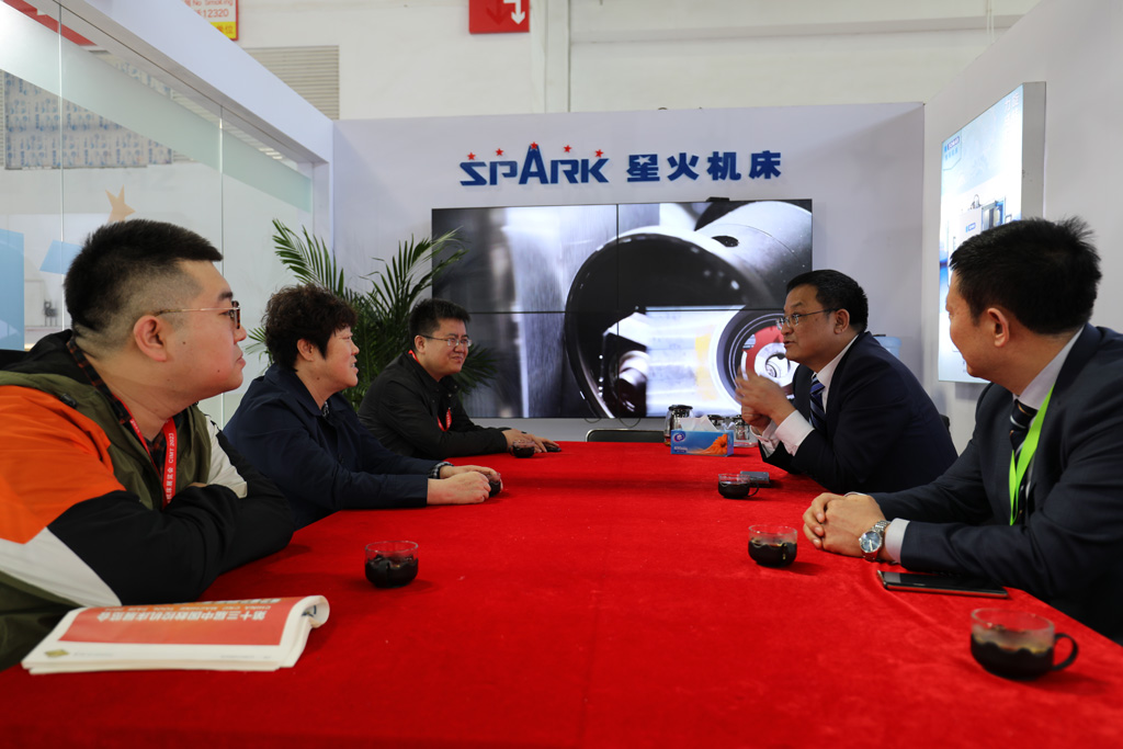 座談中,蔣保權向王文秀詳細介紹了公司展品的突出優勢和火爆的參展效果,分析了目前機床行業發展形勢。
