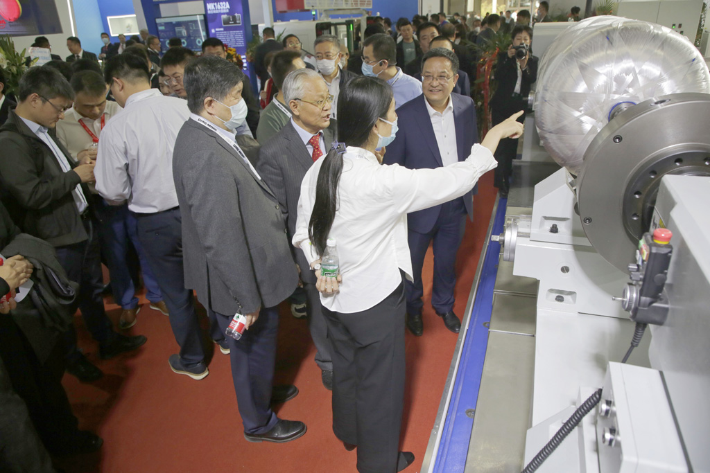 邱鋼、王黎明一行認真細致的參觀了星火機床集團公司展出的多軸聯動復合材料纏繞機床,詳細了解了該機床的性能參數、技術優勢以及應用領域,并對星火機床技術創新工作給予充分肯定。