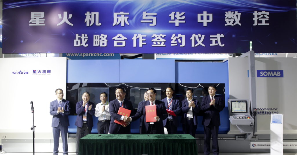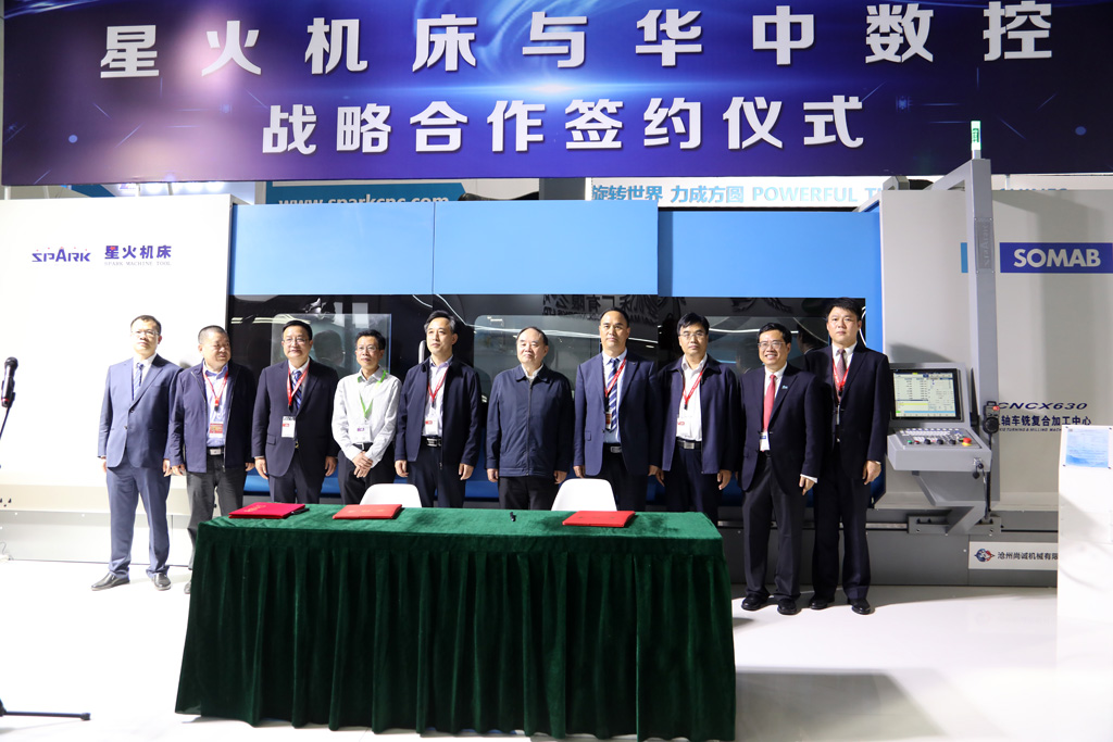 4月10日下午,展會開幕當天,星火機床集團公司與華中數控簽訂戰略合作協議。我國著名機械工程專家、中國工程院院士,教育部原部長、中國工程院原院長周濟先生,甘肅省軍民融合辦副主任王懷勝、省工信廳巡視員李開明、省科技廳巡視員梁云升及省市相關部門領導應邀參加簽約儀式。雙方企業將以此為契機,深度融合,創新發展,發揮各自優勢,在更寬領域、更大空間實現資源共享,共同為推進我國工業母機發展而不懈努力。