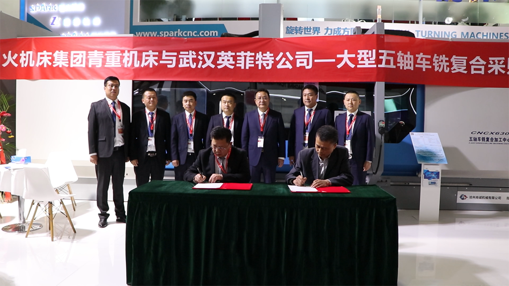 4月11日,星火機床集團青重機床在展會現場重點與客商簽訂大型五軸車銑復合采購項目、鐵路車輪車床出口韓國項目等合同。三天來,星火機床集團公司展出的高端五軸聯動數控機床、多軸聯動復合材料纏繞機床、自動化加工數控車輪車床、高精度數控車床等產品吸引了上萬人次國內外新老客戶的參觀與洽談,并促成多筆訂單,收獲豐厚。