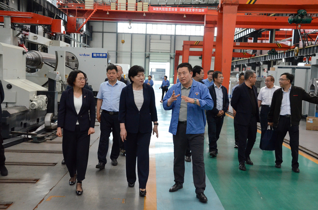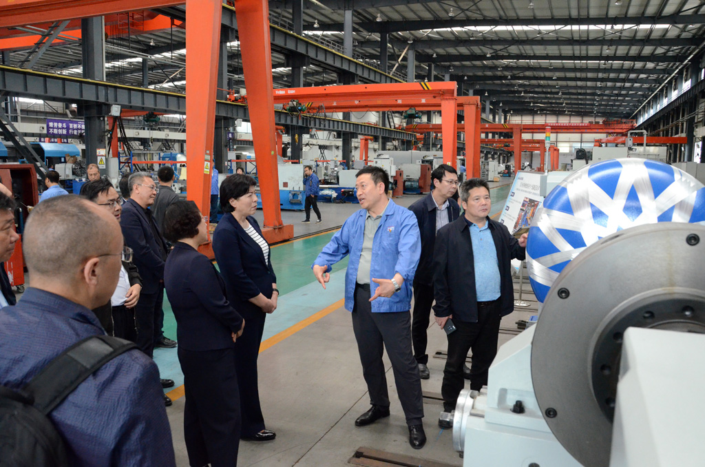 在星火機床工業園裝配現場,劉勝向郭玉芬一行介紹了公司基本情況、項目建設、技術創新和研發生產的各種高精度產品的性能、用途,目前在國內的技術水平。劉勝說,根據國內外形勢和國家政策導向的變化,最近幾年,我們在消化引進技術的同時,通過自主創新、集成創新等方式,為事關國家安全的重點領域研發了填補國內空白的多軸聯動數控纏繞機床、大型五軸數控機床等產品,在替代進口、滿足軍工船舶等行業需求方面做了大量工作。希望省政協通過實地考察調研,向上級黨委和政府建言獻策,為企業營造更好營商環境。