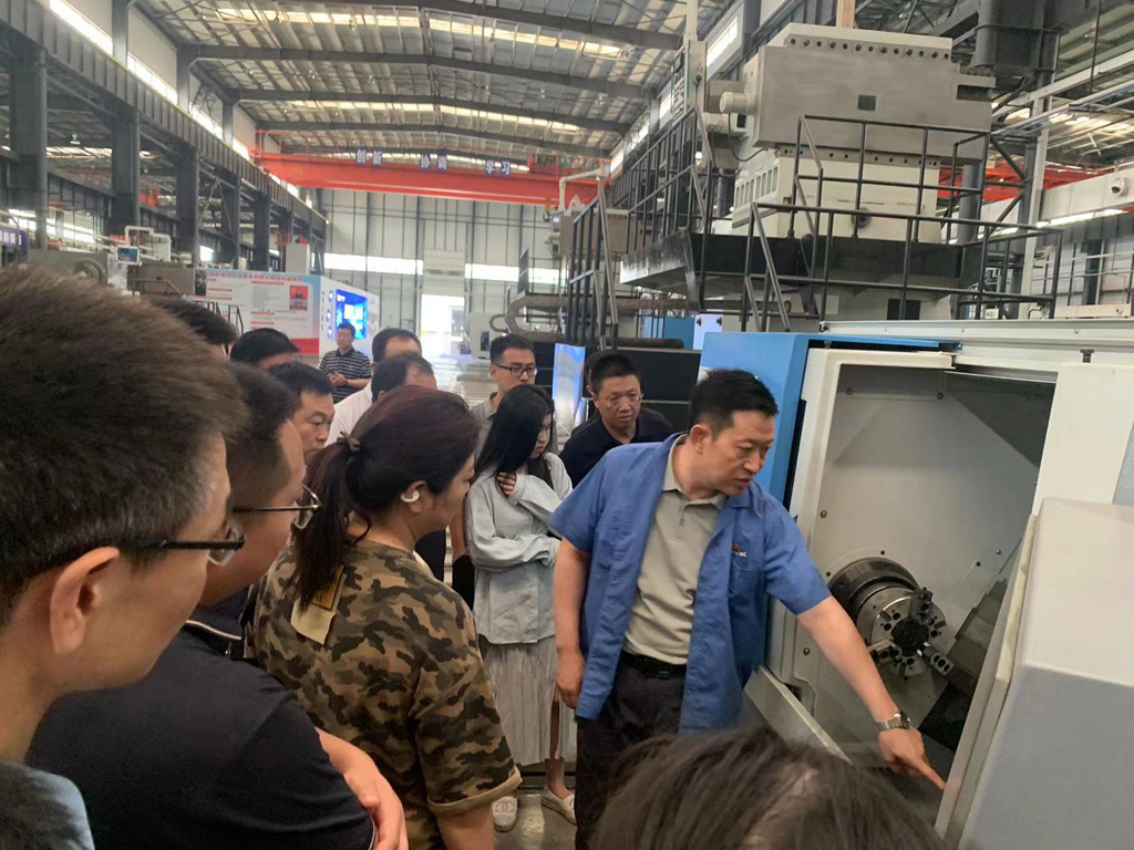在工業園裝配車間,劉勝對市委黨校2個培訓班學員來公司參觀表示歡迎。他向大家介紹了企業的發展歷程,企業文化以及公司發展變化,結合現場裝配中的產品向大家詳細介紹了重型臥式車床、五軸聯動復合加工中心、長軸機床以及消化吸收法國索瑪公司先進技術生產的航空精密機床。學員們對公司的產品性能、用途以及市場前景等表現出極大興趣,不時向公司領導們提問。劉勝、蔣俊針對學員們的具體問題分別進行了解答,現場頓時充滿濃厚的學術氛圍。通過實地參觀,大家對于星火有了更加深刻的了解。