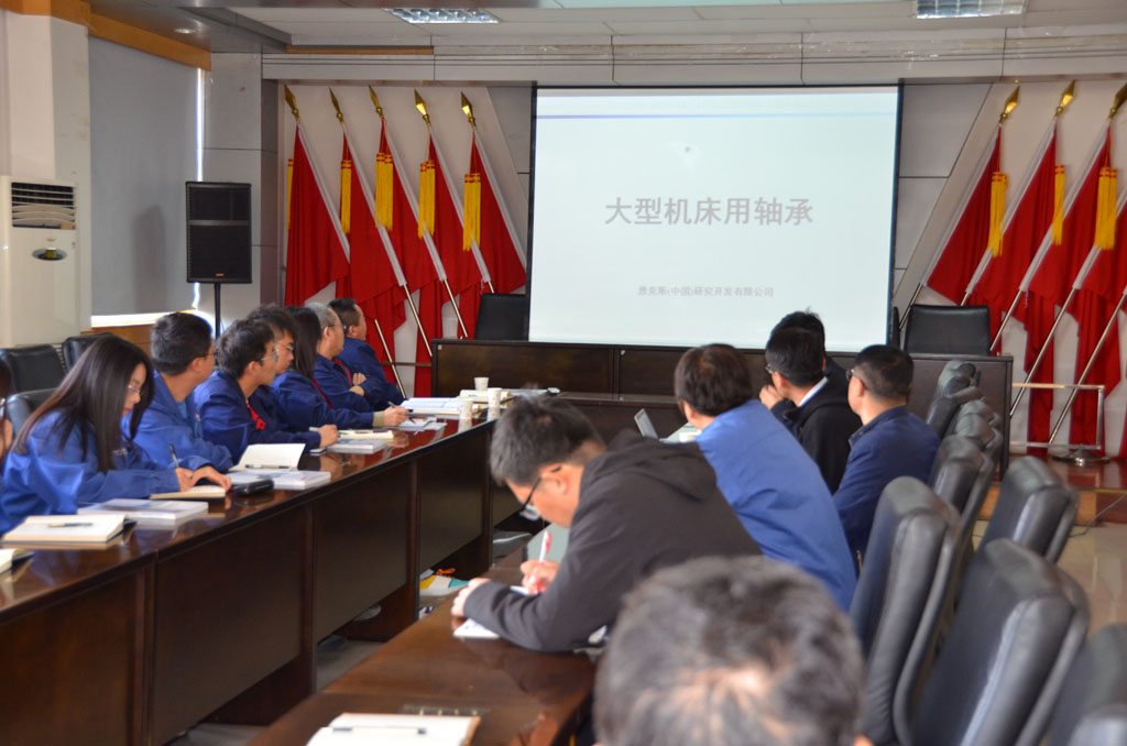 展海瑜等參會人員就公司高精高速產品的軸承選用及注意事項與NSK技術人員進行了探討交流。
