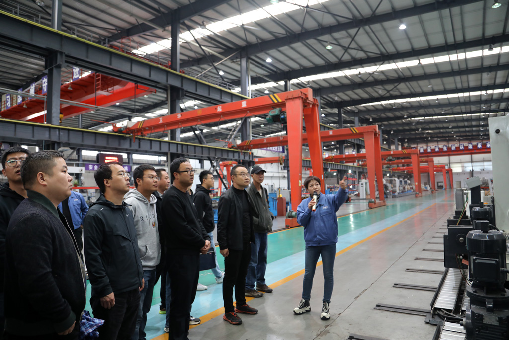 星火機(jī)床集團(tuán)公司黨群工作部部長蔡建欣及公司質(zhì)檢部副部長羅崇寶接待來訪人員并陪同參觀現(xiàn)場。