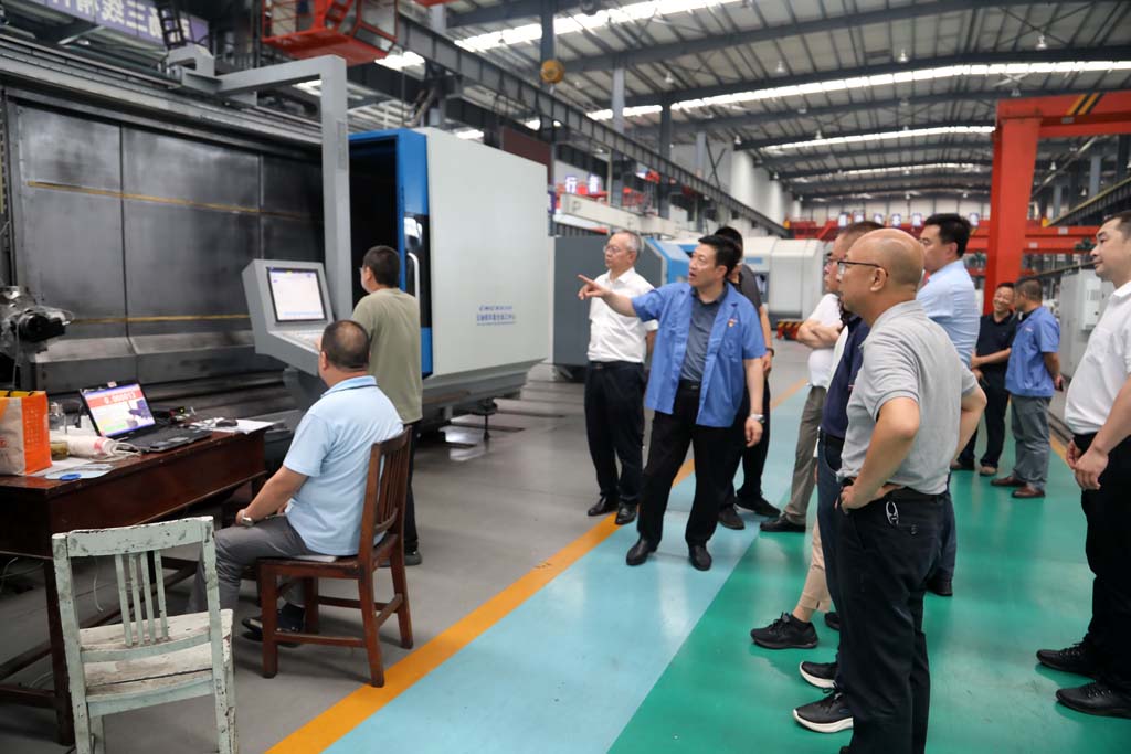 戴岸彤一行在星火集團公司領導劉勝、蔣俊的陪同下深入公司生產加工車間,了解企業生產流程、產品種類以及設備配置等情況。在青重加工車間,雙方領導進行了深入的交流和探討,就機床行業的發展趨勢、技術創新以及市場需求等方面進行了熱烈的討論。戴岸彤一行對星火在機床制造方面的專業能力表示了贊賞,對星火公司的技術實力和取得的成就給予了充分肯定。